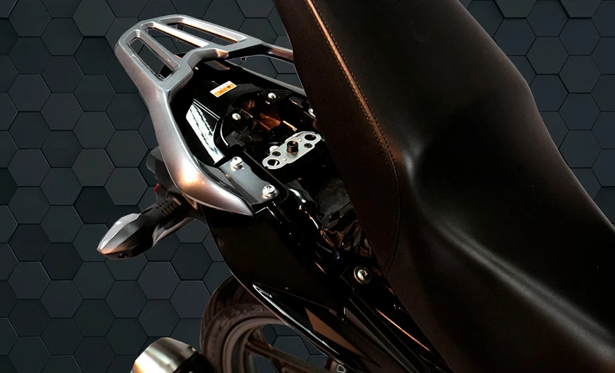 Com design agressivo e cheio de personalidade, linhas marcantes e uma aleta lateral imponente, ela transmite a mensagem de força, desempenho e agilidade que ela realmente entrega.