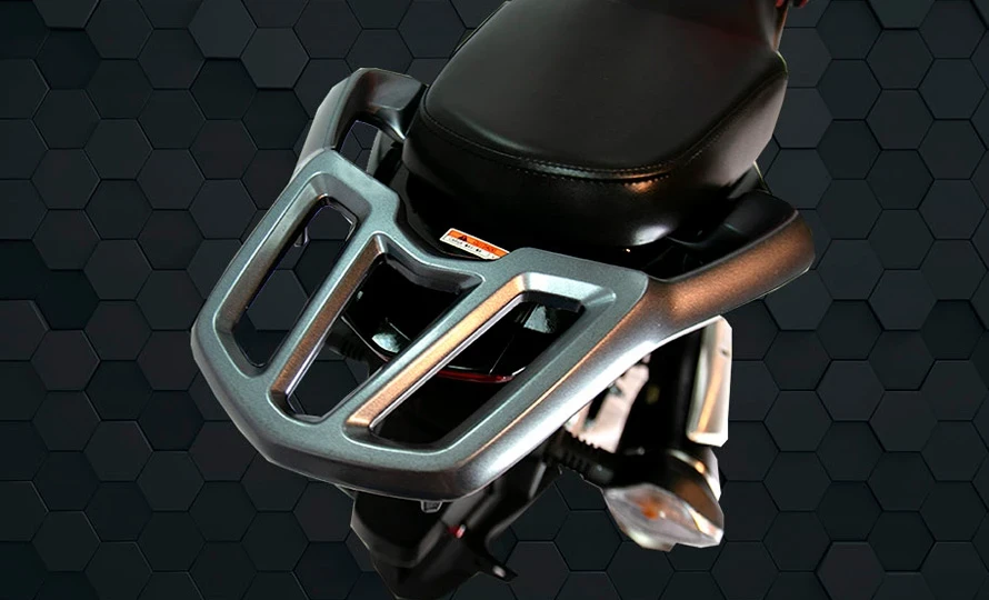 Toda a parte frontal da moto tem uma inspiração futurista e em conformidade com o princípio da aerodinâmica, entregando praticidade, versatilidade para o trânsito e muita beleza.