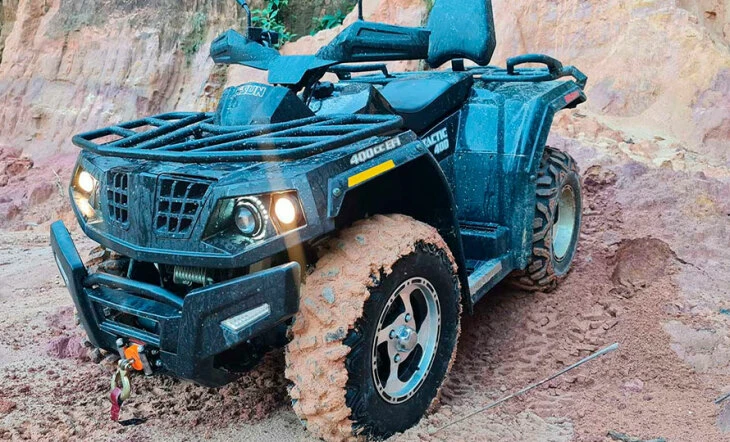 O Tactic 400 adapta-se a qualquer desafio. Com transmissão CVT e seletor 4x4/4x2, ele domina todos os terrenos. Seu guincho elétrico e suspensão ajustável garantem preparo para tarefas pesadas e passeios leves.